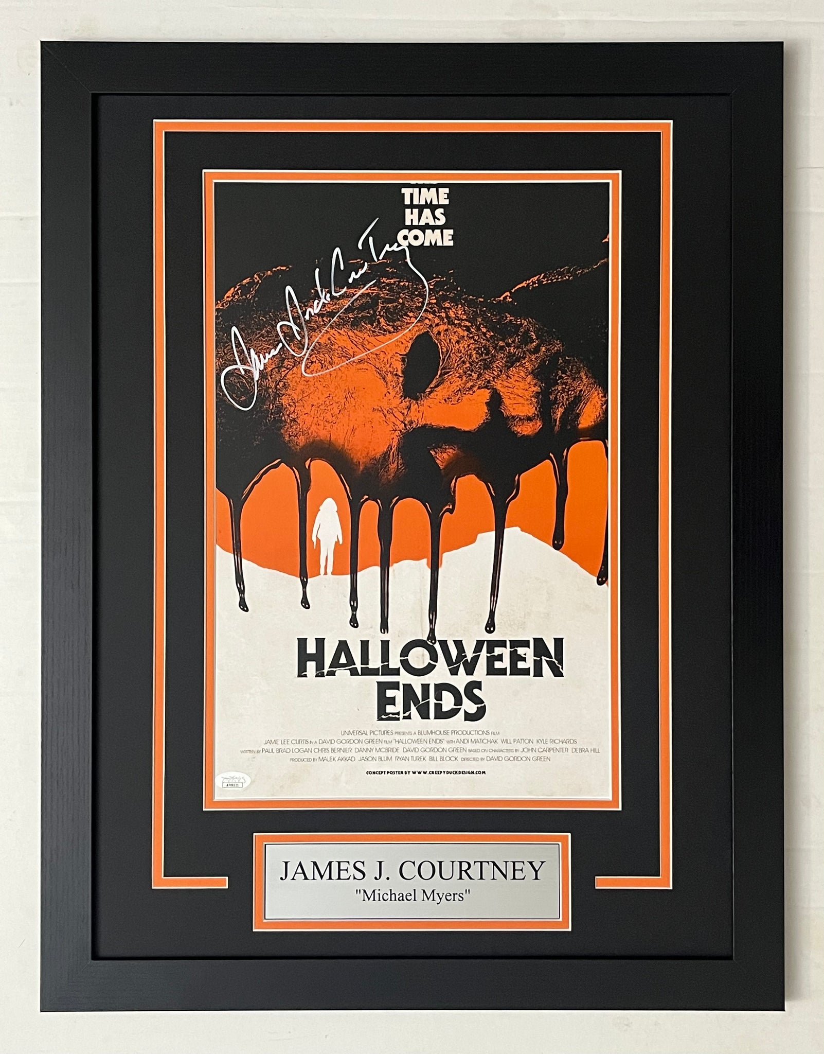 Actor James Jude Courtney, who played "Michael Myers", in HALLOWEEN KILLS autographed 12x18 mini movie poster framed display.